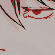 EYES: right eye (blind): milky white + black sclera. left eye: lust red